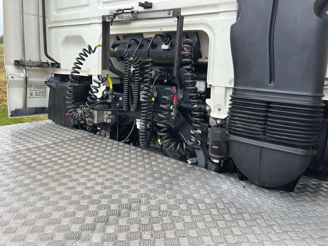 Tillbehör | DAF XF530 6x2 dragbil av 2020 års modell med hydraulikanläggning. 530 hk Euro 6-motor och automatväxellåda AS-Tronic/TraXon. Axelavstånd 3 100 mm. Totalvikt 26 ton och tjänstevikt 9 200 kg, vilket ger en lastförmåga på 16 800 kg. Utrustad med JOST luftförskjutbar vändskiva, hydraulikanläggning med två kretsar för tipp och walkingfloor samt aluminiumavtäckning. Bränsletank 590 liter och AdBlue-tank 60 liter. Skivbromsar med ABS och motorbroms. Komfort och säkerhet: ACC avståndsradar, nödbromssystem, körfältsassistans, parkeringsvärmare, elvärmare, automatisk klimatanläggning, radio, walkie, navigation, kaffemaskin och kylskåp. Två sovplatser. Lastbilen levereras nybesiktigad och i mycket gott skick. Se fler bilder på vår hemsida www.scanvo.se eller ring oss på Scanvo Lastbil AB så berättar vi mer. Tel. 0340-84 000 |