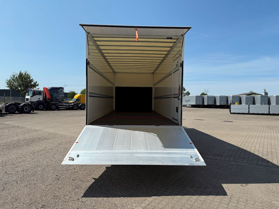 Tillbehör | Ny DAF XB230 4x2 lastbil med fast skåp och bakgavellyft av 2025 års modell. 230 hk Euro 6-motor och TraXon automatväxellåda. Axelavstånd 5 000 mm. Totalvikt 11 990 kg. SAXAS-skåp med dörr på höger sida bak, invändiga mått: längd 7 200 mm, bredd 2 500 mm och höjd 2 390 mm. Utrustat med finerbotten och surrningsrader i två nivåer. DHOLLANDIA bakgavellyft 1 500 kg med invändig manövrering via spiralkabel. Bränsletank 185 liter och AdBlue-tank 30 liter. Parabelfjädring fram och luftfjädring bak. Skivbromsar, ABS och motorbroms. Komfort och säkerhet: digital färdskrivare, multifunktionsratt, farthållare, ACC avståndsradar, nödbromsfunktion, luftfjädrad förarstol med värme, hyttvärmare, aircondition, elhissar, radio och backkamera. Lastbilen levereras nybesiktigad, med 3 års fabriksgaranti, och i mycket gott skick. Se fler bilder på vår hemsida www.scanvo.se eller ring oss på Scanvo Lastbil AB så berättar vi mer. Tel. 0340-84 000 |