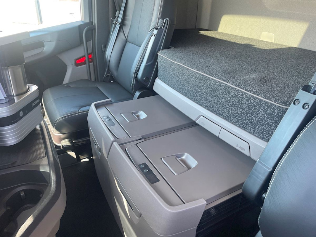 Tillbehör | Fabriksny Scania S660 6x2 dragbil av 2025 års modell. V8 Euro 6-motor på 660 hk och Opticruise G33CM1 automatväxellåda med retarder. Axelavstånd 2 950 mm. Totalvikt 26 ton och teknisk tågvikt upp till 70 ton. Utrustad med JOST luftförskjutbar vändskiva, dubbla bränsletankar på totalt 680 liter (480 + 200 l) samt AdBlue-tank 76 liter. Full luftfjädring fram och bak. Skivbromsar med ABS/EBS9, motorbroms och retarder. Komfort och säkerhet: S-hytt Highline med två sovplatser, lädersäten med värme och ventilation, ACC avståndsradar, nödbromssystem (AEBS-3), körfältsassistans (LDWS), lastindikator, navigation, radio, Bluetooth, digital färdskrivare, backkamera, kaffemaskin, mikrovågsugn, 2 kylskåp, multifunktionsratt, Scania Air Cooler, elektriskt soltak, automatisk klimatanläggning och aircondition. Lastbilen levereras nybesiktigad, med fabriksgaranti till 23-04-2026, och i mycket gott skick. Se fler bilder på vår hemsida www.scanvo.se eller ring oss på Scanvo Lastbil AB så berättar vi mer. Tel. 0340-84 000 |