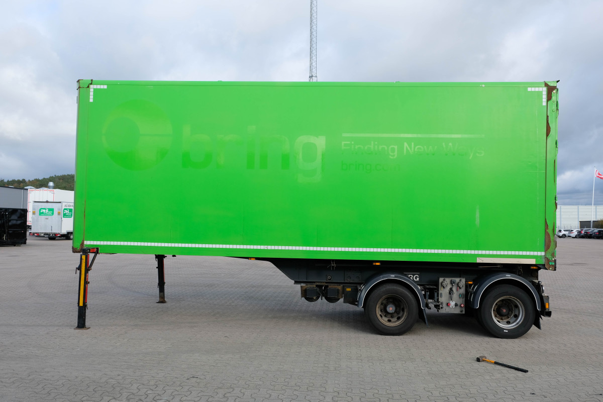 Tillbehör | Kel-Berg 2-axlad utrikes Linktrailer med skåp. Årsmodell 2014. Inv längd 7820 mm. Inv bredd 2500 mm. Inv höjd ca 2720 mm. Utv höjd ca 4050 mm. Bommar invändigt. SAF axlar med trumbroms. 265/70R19,5” däck. Se fler bilder på vår hemsida www.scanvo.se eller ring oss på Scanvo Lastbil AB så berättar vi mer! 0340-84 000 |
