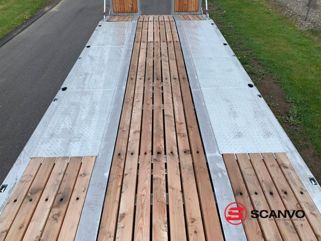 | Tillbehör | Fabriksny Hangler TPS-H 280 Jumbo-Z maskinkärre med 3 axlar, hydrauliska ramper och låg lasthöjd på 890 mm. Utrustad med SAF-axlar, luftfjädring, axellyft på första axeln, 70 mm träplankor i flakbotten samt rifflad stålplåt över hjulhus. Duo-Matic luftkoppling, VBG-drag (57 mm), verktygslåda, nedfällbara surrningsöglor och 12 st 10-tons surrningar. Flaket har 6 350 mm plan yta + 1 050 mm knäck, och bredd kan utökas från 2 520 mm till 3 000 mm. Levereras nybesiktigad och registrerad i Sverige. Se fler bilder på vår hemsida www.scanvo.se eller ring oss på Scanvo Lastbil AB så berättar vi mer! 0340-84 000 |