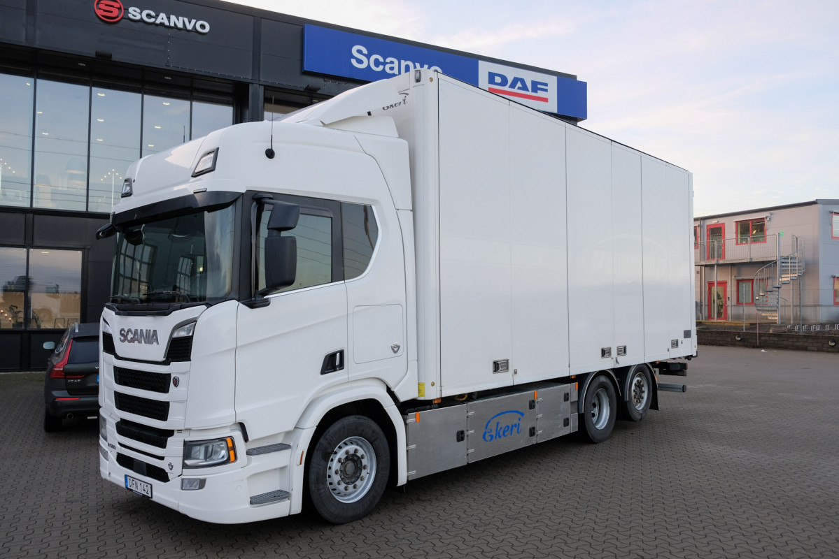 | Modell | Scania R580 6x2 Ekeri skåpbil med öppningsbar sida |