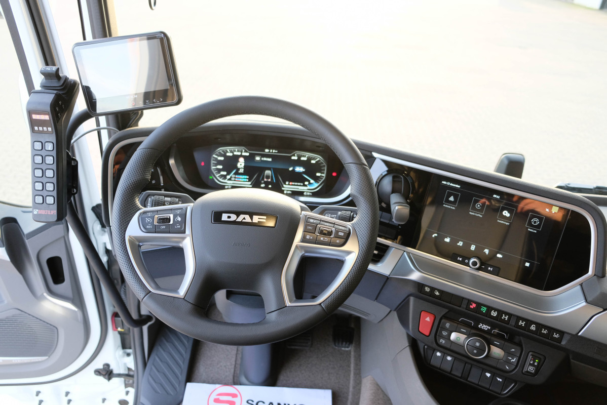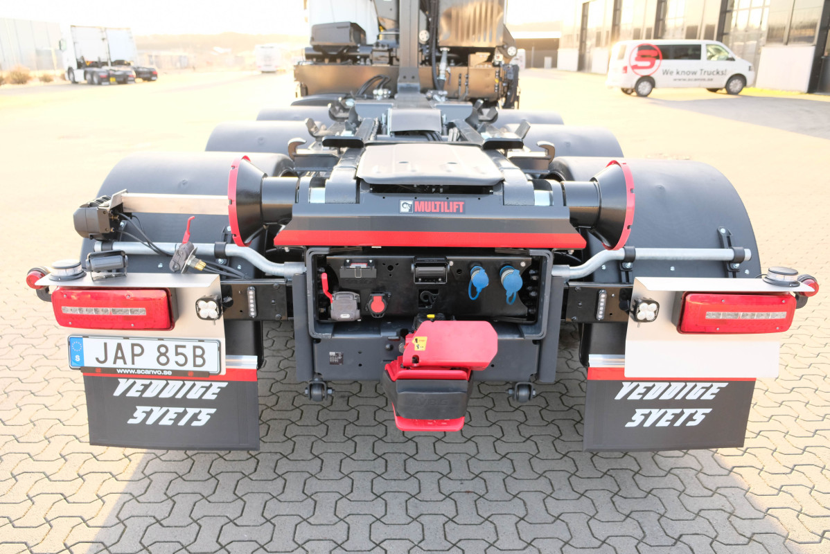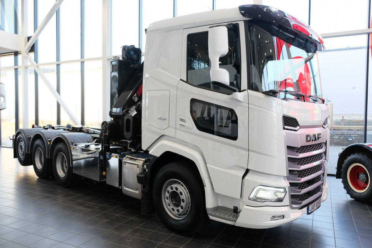 Fabriksny DAF XF 530 FAW 8x4*4 Tridem med Hiab 21 tons lastväxlare samt Hiab X-HiPro 302 EP-5 kran. Warranty Plus Fordonsgaranti 3 år utan milbegränsning på chassi. 10 tons framaxel. Tjänstevikt 18 200 kg. MX motorbroms. 445 l tank. DAF Corner View. Vision instrumentbräda. Xtra Leather Air stol. Kylskåp. Hyttbelysning Luxury LED. Värmare motor och hytt. Exklusivt högtalarsystem. Bluetooth. GPS. Parabel fram/luft bak. Hiab Multilift Ultima 21 SL.51. Lastväxlare. Styrning med manöver i hytt. Snabbkörning/tipp/sänk. Hiab X-HiPro 302 EP-5 kran med 5 hydrauliska utskjut och 15,1 m räckvidd. (lyfter 1520 kg / 15 meter. Stödbens avstånd 6,8 m. Trådlös fjärrstyrning Olsberg Combi Drive med 6 spaker. Utv slang och rörsats för 2 funktioner inkl Cejn Multi-X koppling. VBG795V3. Duomatic för släpbroms i slutbalk och 1 för automatläm. Verktygslåda. Blixtljusramp. Led rotorljus. Blixtljus 4 st. Lazer Utility 45 på hyttak bak. Se fler bilder på vår hemsida www.scanvo.se eller kontakta oss på 0340-84 000 få ger vi Er en komplett offert på bilen. |
