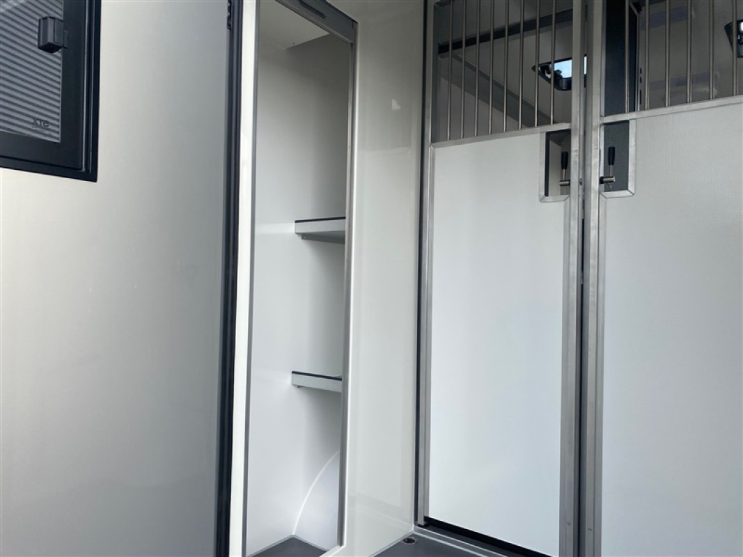 Ny modell Renault Master hästbil med 170 hk och ny automatväxellåda från Renault. Totalvikt 3 500 kg. Utrustad med tre svarta lädersäten, sätesvärme, luftkonditionering, farthållare, Apple CarPlay, kamera, temperaturövervakning samt nytt säkerhetsutrustningspaket. Påbyggnation från STX med skåpsinredning för två hästar, två takfönster, elektronisk ventilation, flyttbar skiljevägg, dag- och nattbelysning samt fönster mellan hytt och hästdel. Förvaring ovanför förarhytten, sadelhållare samt skåp med jalousilucka. Godkänd för långa transporter. Dragkrok för 2 500 kg. Klar för omgående leverans. Levereras nybesiktigad och registrerad i Sverige. Se fler bilder på vår hemsida www.scanvo.se eller ring oss på Scanvo Lastbil AB så berättar vi mer! 0340-84 000 |