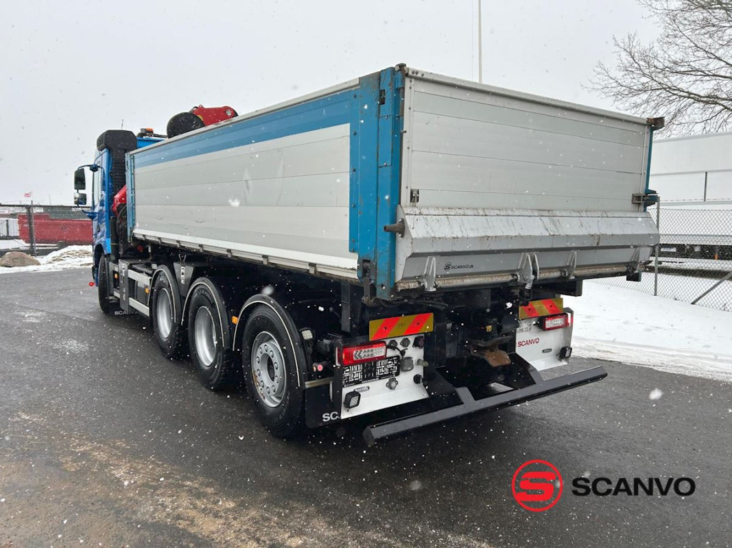 | Tillbehör | Volvo FMX 540 8x4 med Palfinger PK34002 SH-E kran med 6 utskjut och räckvidd upp till 16,7 m. Kranen är fjärrstyrd, har centralsmörjning och är besiktigad 01/2026 vid 2 432 drifttimmar. 3-vägs tipp med helsides öppning åt vänster samt automatisk bakläm. Invändiga flakmått ca L 5 730 x B 2 420 x H 1 100 mm. Utrustad med VBG 795 drag, hydraulik bakåt, verktygslådor, arbetsbelysning och blixtljus. Komfortutrustad hytt med VDS Dynamic Steering, I-Shift, klimatanläggning, motor- och kupévärmare samt kamera. Fullservad vid 178 050 km och i mycket gott skick. Levereras nybesiktigad och registrerad i Sverige. Se fler bilder på vår hemsida www.scanvo.se eller ring oss på Scanvo Lastbil AB så berättar vi mer! 0340-84 000 |
