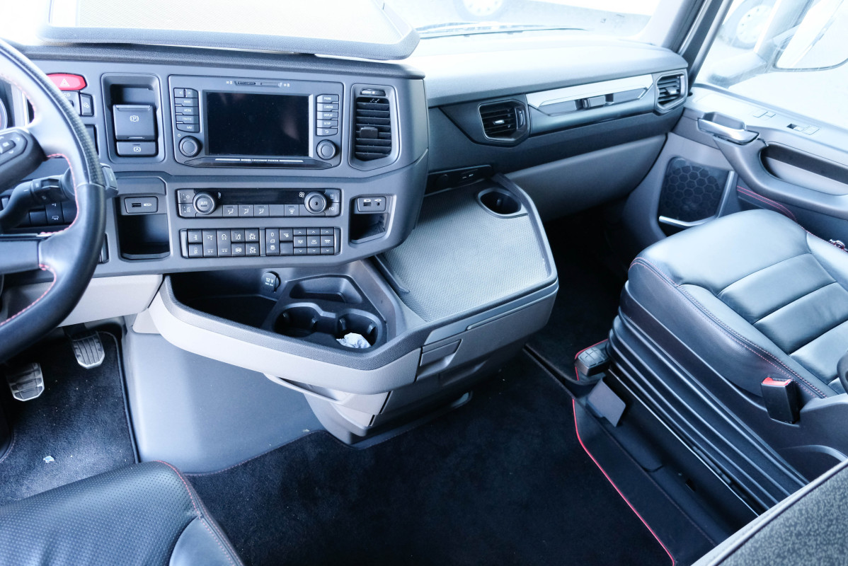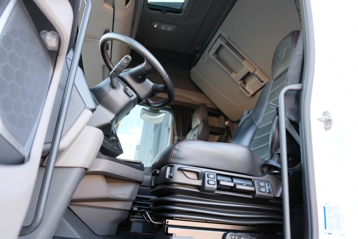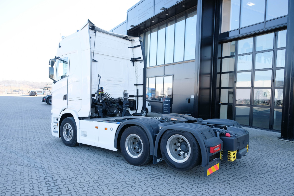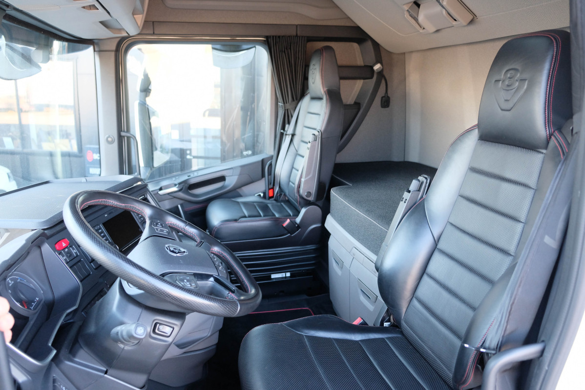 | Tillbehör | Scania S770 V8 6x2 dragbil av 2024 års modell. Endast 191 000 km. 26 tons totalvikt. 2 950 mm axelavstånd. V8 Euro 6-motor på 770 hk. Växellåda GRSO926R. Full luftfjädring fram och bak. Skivbromsar, ABS, motorbroms och retarder. Två bränsletankar på 480 + 200 liter samt AdBlue-tank 76 liter. JOST luftförskjutbar vändskiva. Axeltryck: fram 8 000 kg, bak 12 700 + 7 500 kg. Lastbilen är utrustad med Scania air cooler, horn på taket, SAT Nordic ljusskylt, LED-arbetsljus och Nato-kontakt. Komforten är på högsta nivå med lädersäten, förarstol med värme och ventilation, automatisk klimatanläggning, aircondition och kylskåp. Navigation, multifunktionell ACC-avståndsradar, nödbromsfunktion, körfältsassistans och lastindikator ingår också. Lastbilen levereras nybesiktigad och i mycket fint skick. Se fler bilder på vår hemsida www.scanvo.se eller ring oss på Scanvo Lastbil AB så berättar vi mer! Tel. 0340-84 00 |