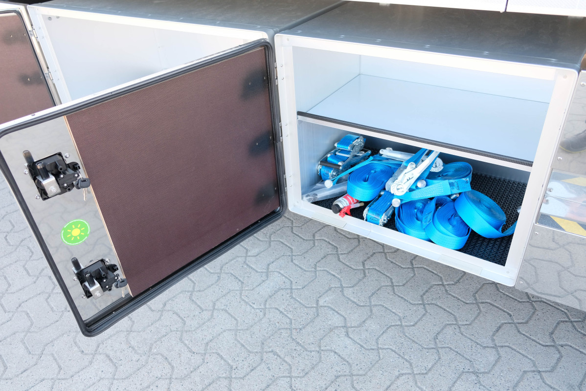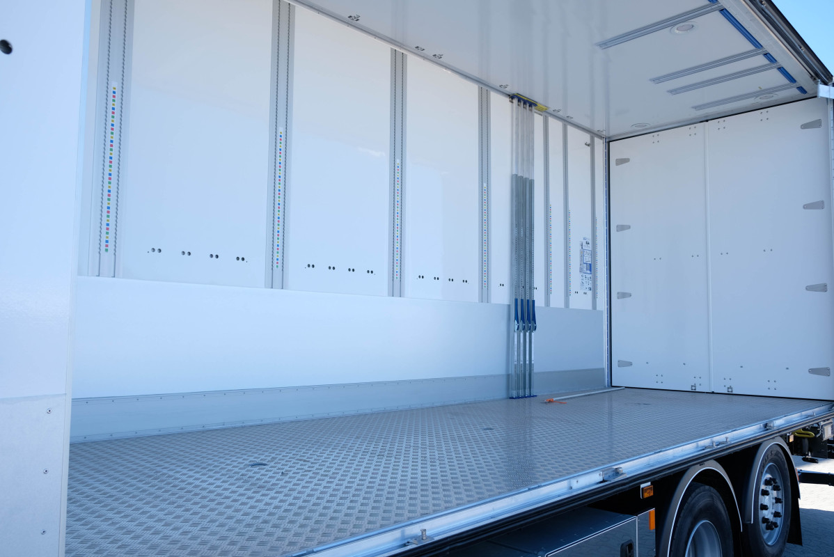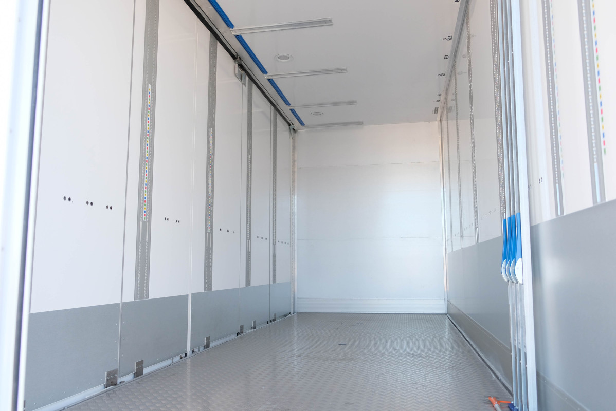 | Tillbehör | Ny Scania R560 6x2*4 Ekeri skåpbil för omgående leverans. Ekeri skåp med öppningsbar sida. Inv längd 7350 mm. Invändig höjd 3180 mm. Inv bredd 2520 mm. Aluminiumgolv. Zepro 2 tons lift med radiostyrning. Förberedd för bommar invändigt. VBG795V drag. Ekeri surrprofil. LED takbelysning. Bandup profil vänster sida. Ekeri spännband. 4 st laststötta. Verktygslåda och pallyftarlåda. Bilen har opticruise med retarder. Luftfjädring fram/bak. Läderpaketet. Förvaringspaketet. Premium infotainment paketet. 550 l tank. 80 l AdBlue. Driver attention support. Aktivt säkerhetssystem. Kollisionsvarningssystem. Kamera. Premiumstolar. 1 säng. Förvaring ovan säng. Kaffekokare. Mikro. Kylskåp. Nattkylare. Värmare motor och hytt. 12,9” display med navigation. Se fler bilder på vår hemsida www.scanvo.se eller ring oss på Scanvo Lastbil AB så berättar vi mer! 0340-84 000 |